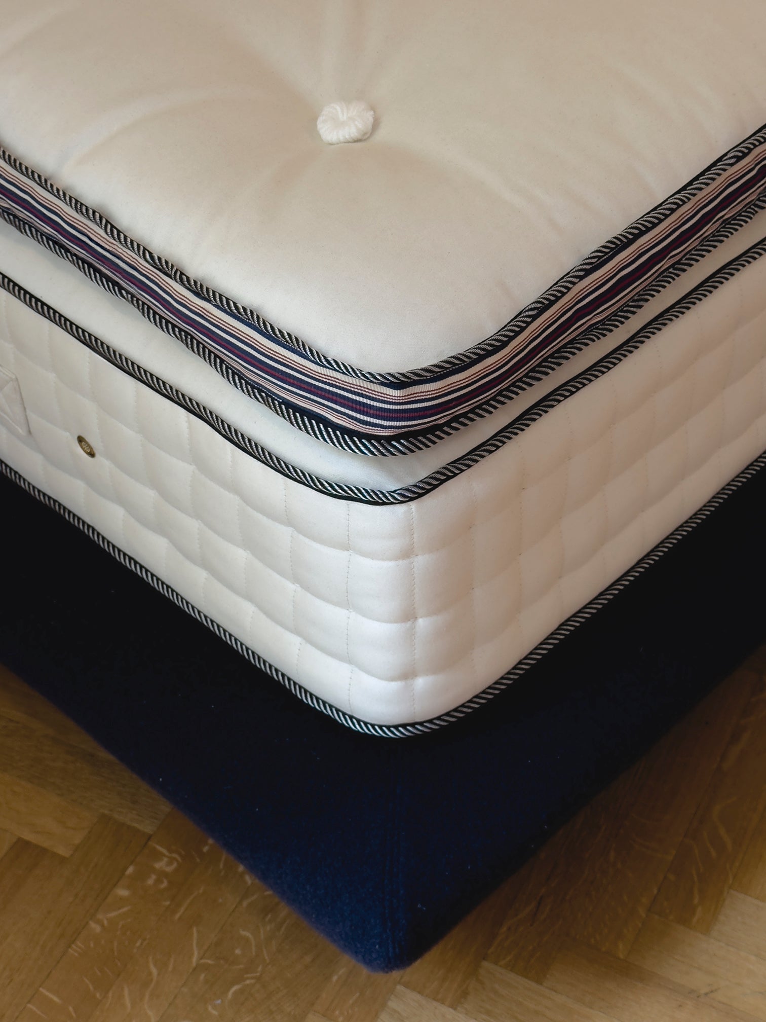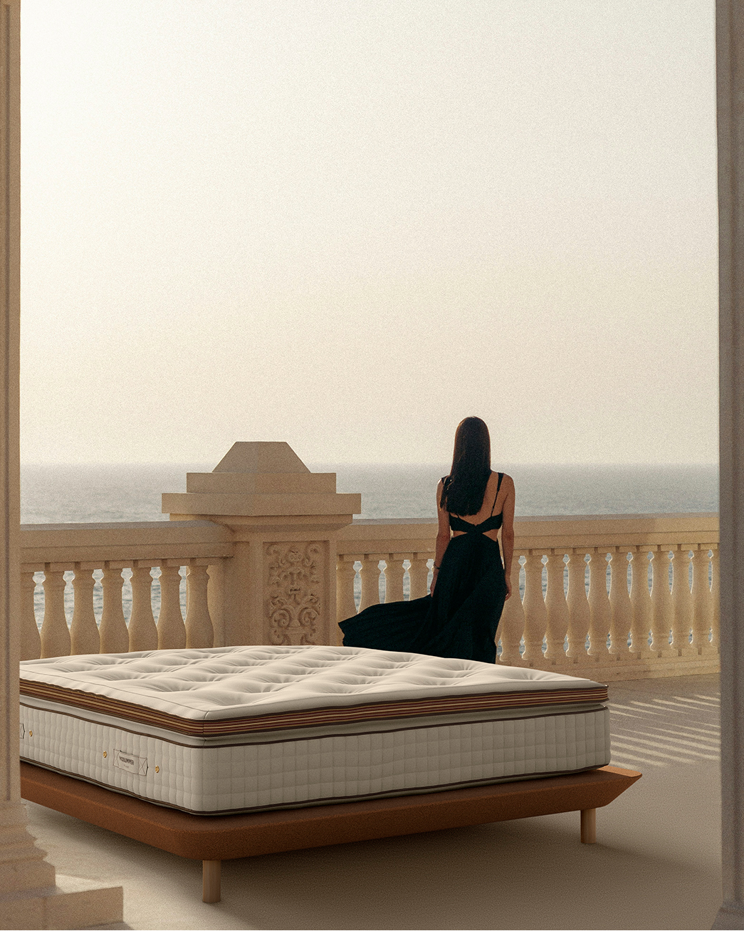 Essential, tactile, and light — Bellini is the new bed system that captures the essence of relaxed Italian elegance. Its boxspring is upholstered in a soft Loro Piana Interiors bouclé fabric, made of wool and cashmere, giving texture and warmth to its minimal silhouette. The summer side of the topper is padded with Orange Fiber, an innovative, sustainable material made from Sicilian orange peels — light, breathable, and naturally fresh. Perfectly balanced, Bellini offers seasonal comfort and a quiet, contemporary aesthetic. A new expression of sustainable luxury, made entirely by hand in Italy.